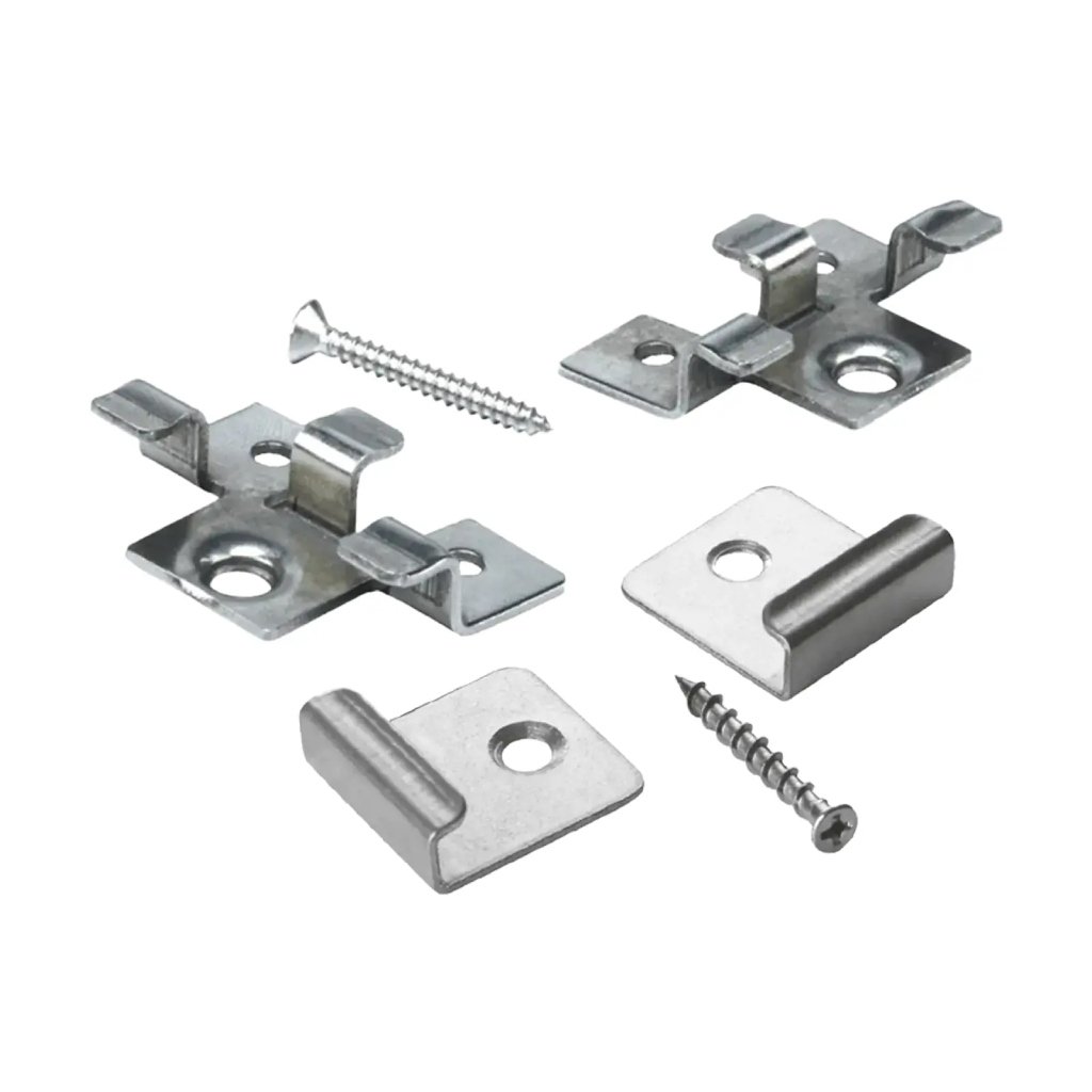 V nabídce naleznete kompletní příslušenství potřebné k profesionální montáži, včetně nerezových vrutů se speciálním bitem pro bezpečné a přesné upevnění. K dispozici jsou také instalační sady ve dvou variantách: