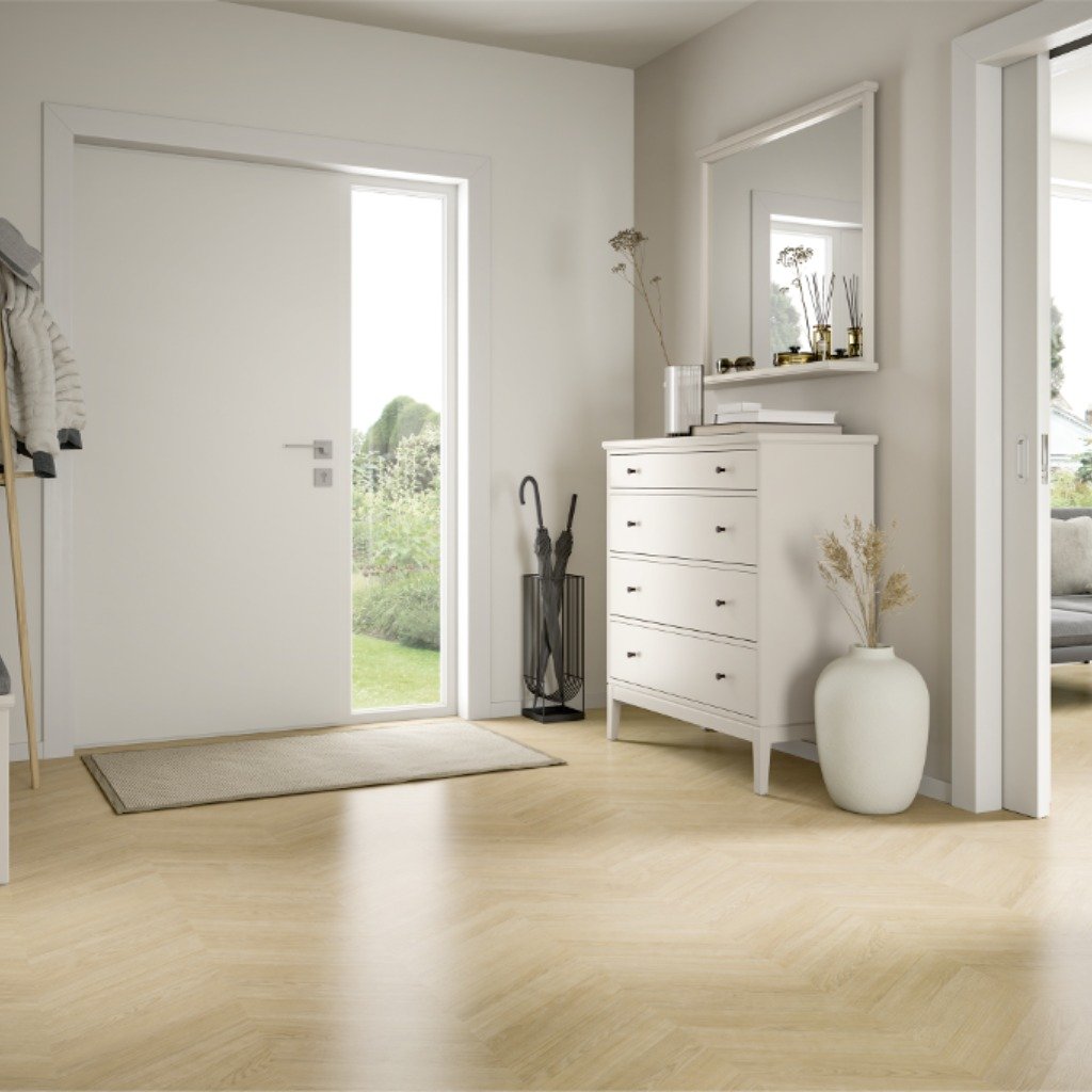 Dekory v klasickém stylu i rybí kosti, odolnost AC4, zámek CLIC it!, vhodné na podlahové topení. Bez PVC.