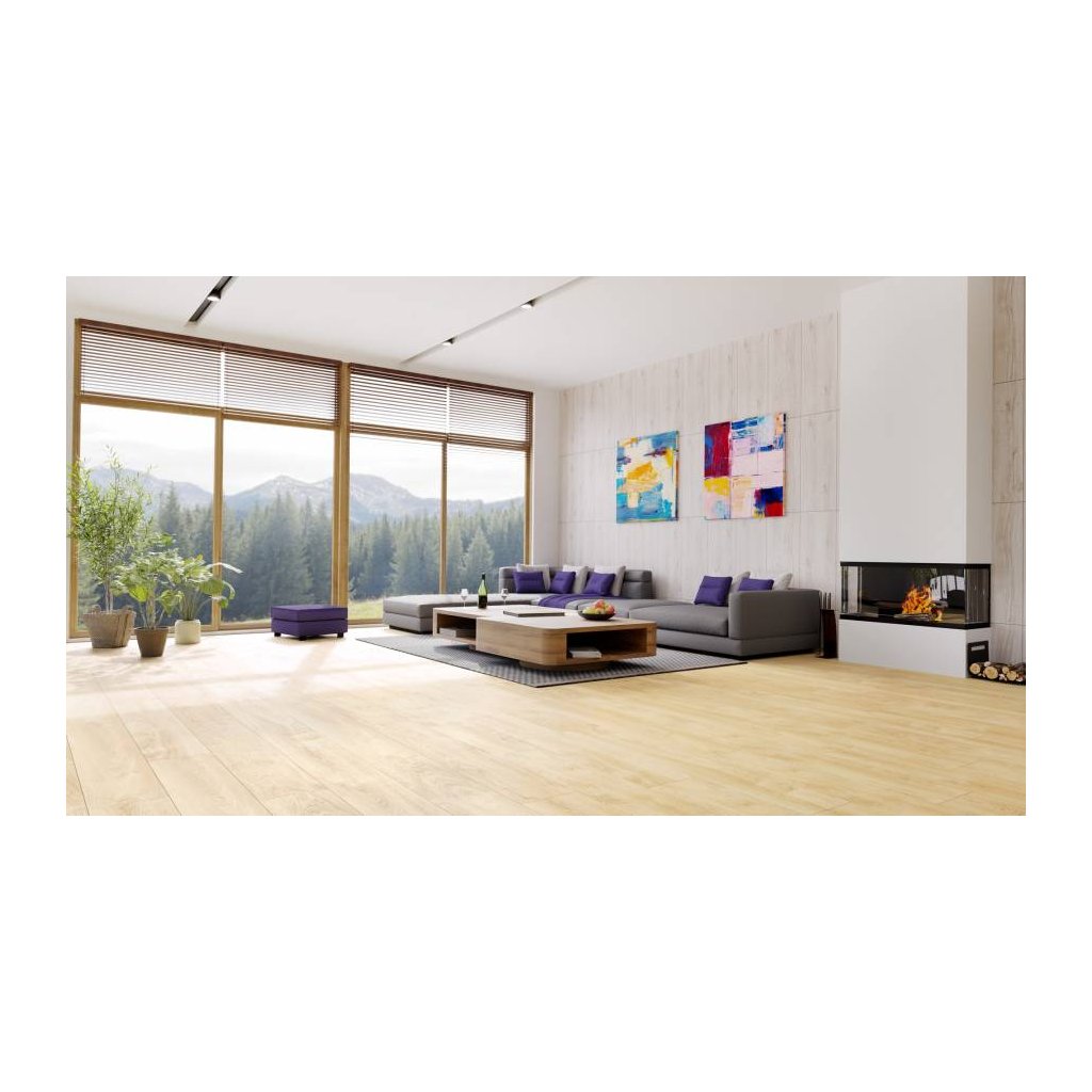Silné 8mm lamely, vysoká odolnost AC5 / třída 33 a snadná údržba včetně možnosti vytírání mokrým nebo parním mopem z ní dělají ideální volbu i do zatěžovaných prostor. Podlaha je vhodná také pro podlahové vytápění (do 28 °C).