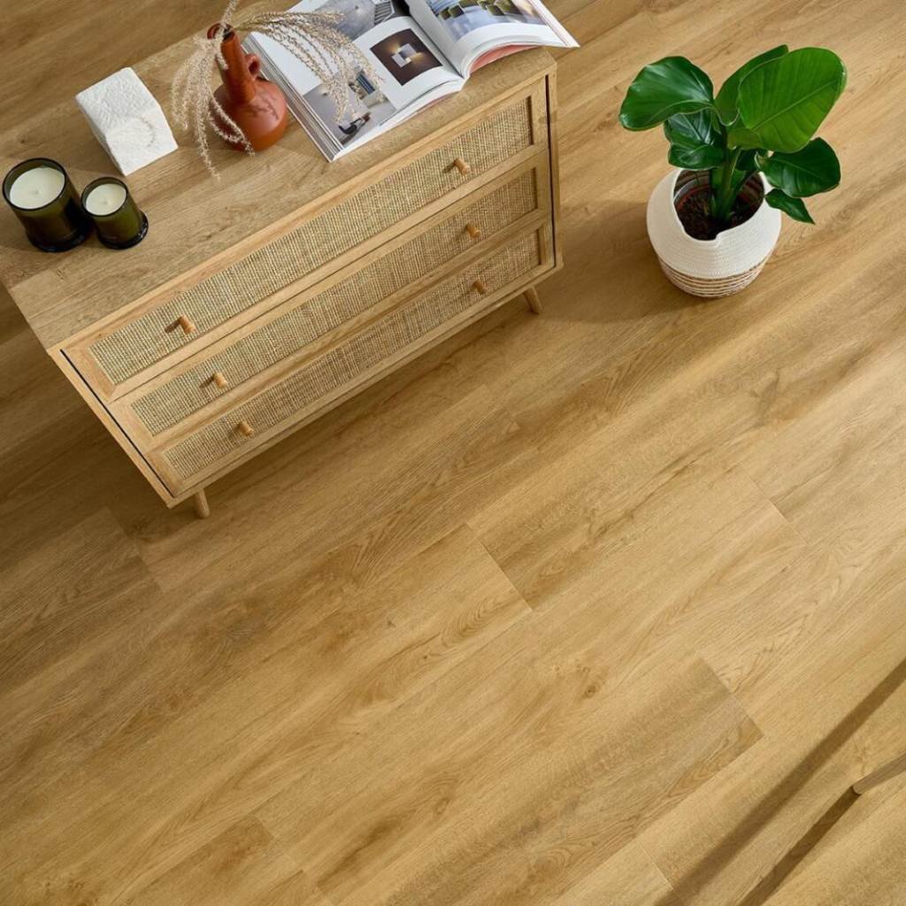Unikátní stabilita této podlahy umožňuje její pokládku až do 200 m² bez nutnosti dilatačních spár, a to i mezi místnostmi. To z ní dělá ideální řešení pro otevřené interiéry, kde propojení kuchyně, obývacího pokoje a chodby vytváří jeden harmonický celek. Povrchová textura působí autenticky – na pohled i na dotek připomíná skutečné dřevo, ale zachovává si výhody vinylu: je teplá, měkká a nenáročná na údržbu.