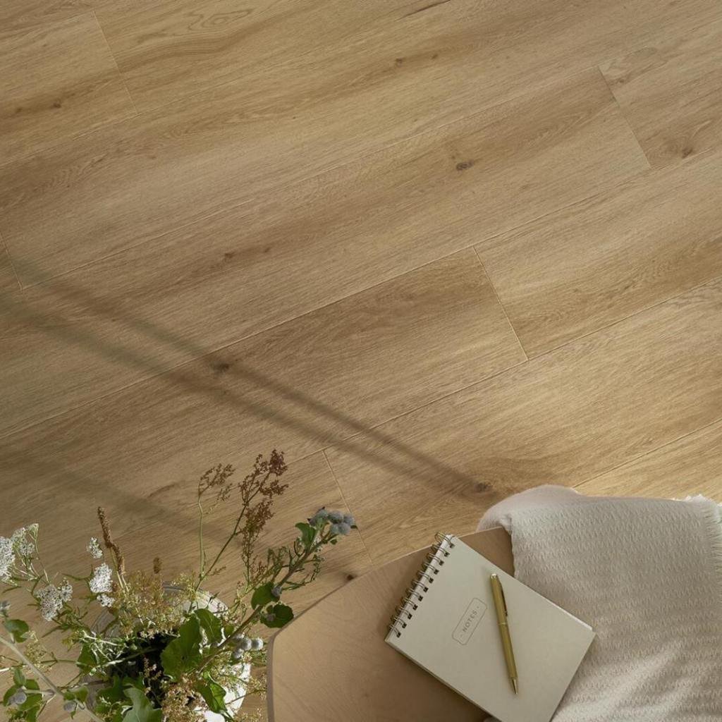 Unikátní stabilita této podlahy umožňuje její pokládku až do 200 m² bez nutnosti dilatačních spár, a to i mezi místnostmi. To z ní dělá ideální řešení pro otevřené interiéry, kde propojení kuchyně, obývacího pokoje a chodby vytváří jeden harmonický celek. Povrchová textura působí autenticky – na pohled i na dotek připomíná skutečné dřevo, ale zachovává si výhody vinylu: je teplá, měkká a nenáročná na údržbu.