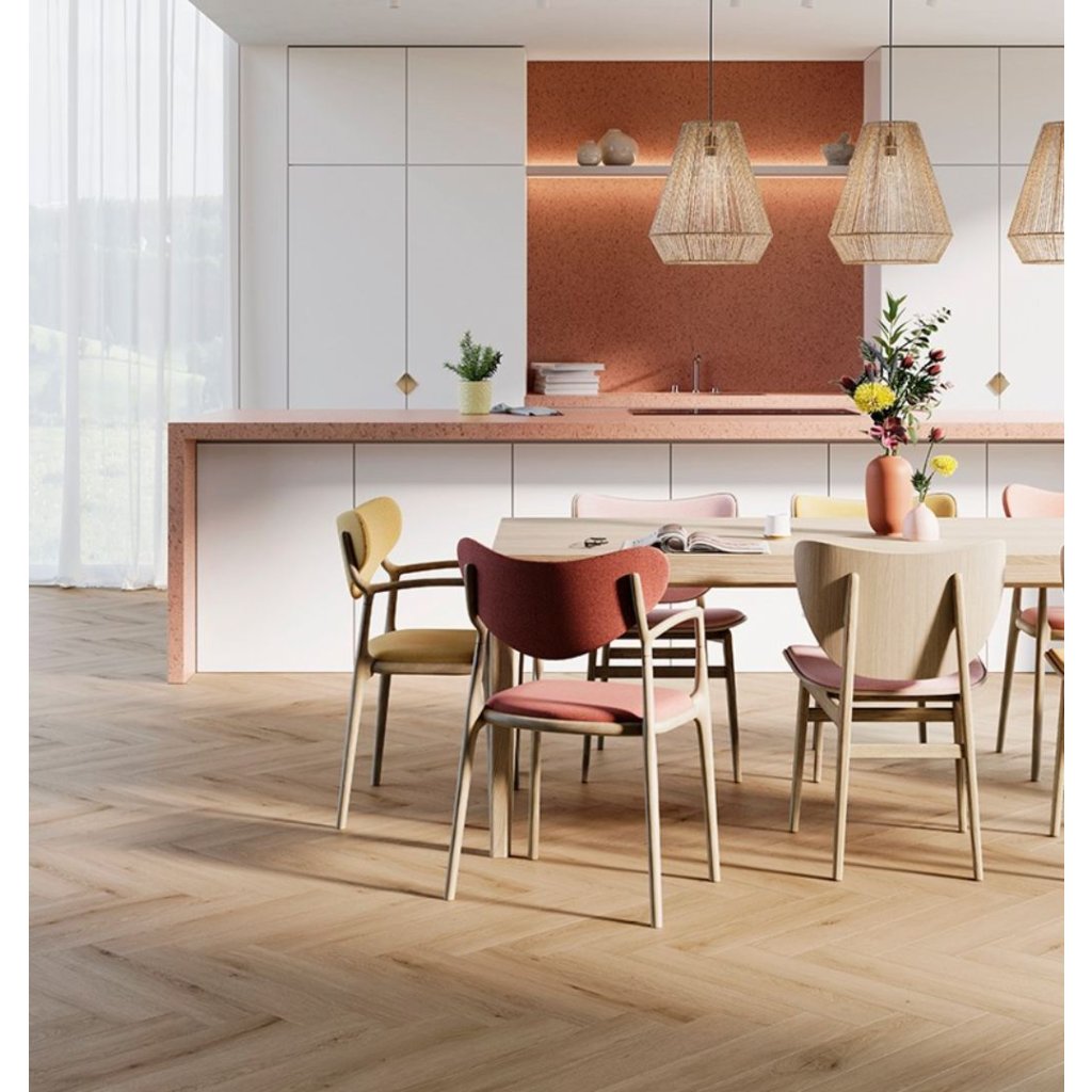 Ideální pro domácnosti i komerční prostory s nízkou zátěží, ParquetVinyl Herringbone se snadno pokládá a je kompatibilní s podlahovým vytápěním. Zaručuje dlouhou životnost a stylový vzhled, který se nikdy neokouká.