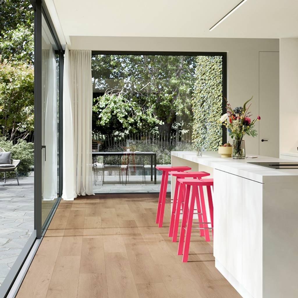 Silná konstrukce (6,5 mm + 1 mm integrované podložky) a nášlapná vrstva 0,55 mm zajišťují odolnost i mimořádný akustický komfort. Pokládka je velmi snadná a podlaha je plně kompatibilní s podlahovým vytápěním. Hodí se nejen do domácností, ale i do komerčních prostor s nízkou zátěží.