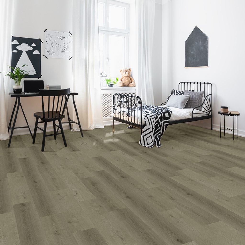 Vinylová podlaha Lamett Tigris s kratšími lamelami a přírodním vzhledem. Jemné barevné variace, inspirace kolekcí Nakuru. Vhodná pro malé i velké prostory.